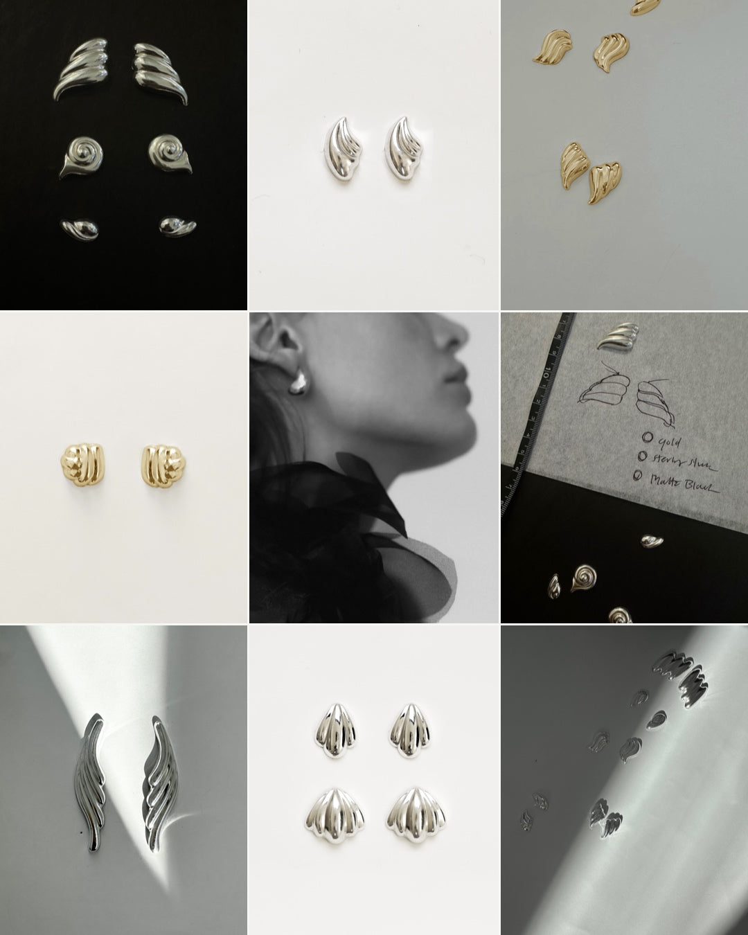 Each sculptural stud is crafted in sterling silver for lasting sheen and everyday comfort. Lightweight, hypoallergenic, and thoughtfully finished, these pieces are designed to be worn often and endlessly styled— modern heirlooms with refined form.